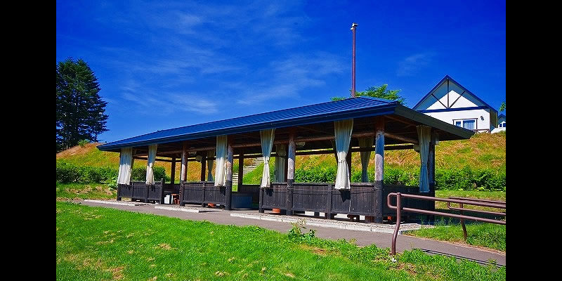 悪天候でも心配ご無用!(屋根付き&ビニール横幕カーテン付き)場内2棟設置。1棟には36名程度収容可能で炉はハウス内に3基あります。